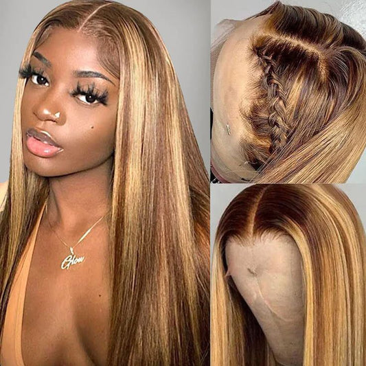 Classic 180% density highlight piano P4/27 color straight human hair 13x4 lace front wigs