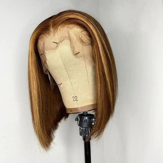 Quality 100% virgin human hair highlight p4/27 color 13x4 lace closure bob wig
