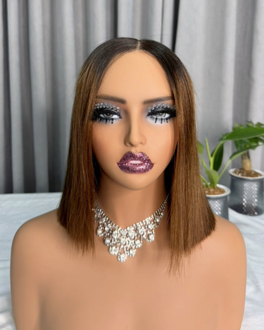 High quality short raw hair 1b/4 brown ombre color 5x5 lace closure bob wig