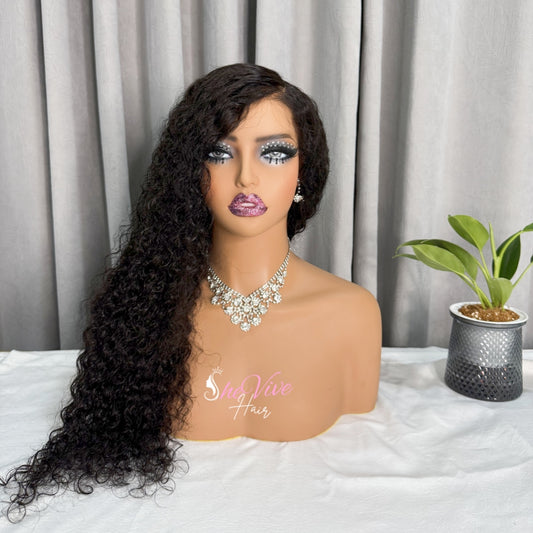 New Design Water Wave Human Hair Glueless Side Part 5x7 lace closure wig